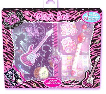 his Girls Diary is perfect for the funky Diva to keep her secrets It comes with a cool heart shaped lock and 2 heart shaped locks There is a Cheetah print Drum set amidst a cool hotpink and zebra pattern all over She will absolutely love this diary amd have fun with this collection of 52 Stickers Read More..
